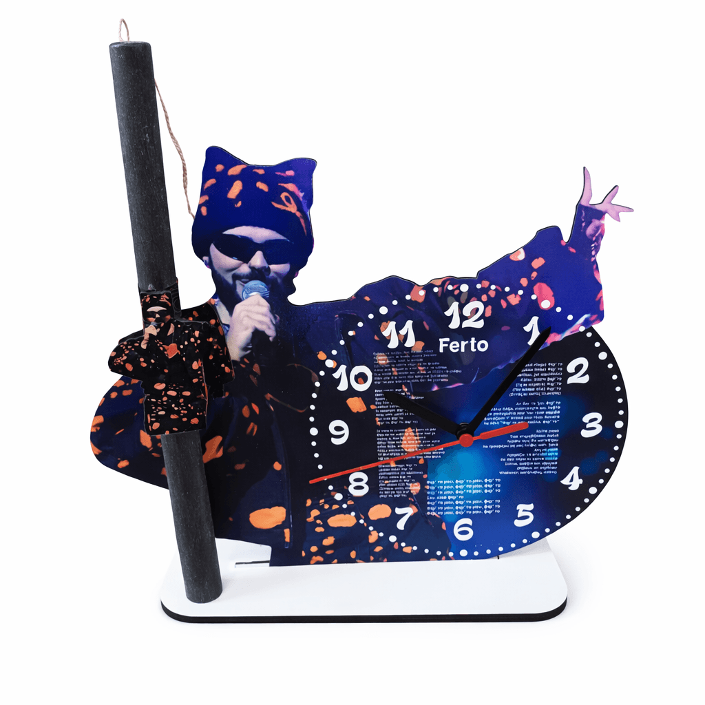 Μια ιδιαίτερη πασχαλινή λαμπάδα με επιτραπέζιο ρολόι εμπνευσμένη από τον Ακύλα σχεδιασμένη για όσους αγαπούν τις ελληνικές επιτυχίες και το ξεχωριστό του ύφος. Το σετ περιλαμβάνει επιτραπέζιο ρολόι με τον αγαπημένο καλλιτέχνη και χαρακτηριστικό στίχο από τραγούδι του “Ferto”. Ένα δώρο που συνδυάζει μουσική, αισθητική και συναίσθημα, ιδανικό για όσους θέλουν να χαρίσουν κάτι διαφορετικό.