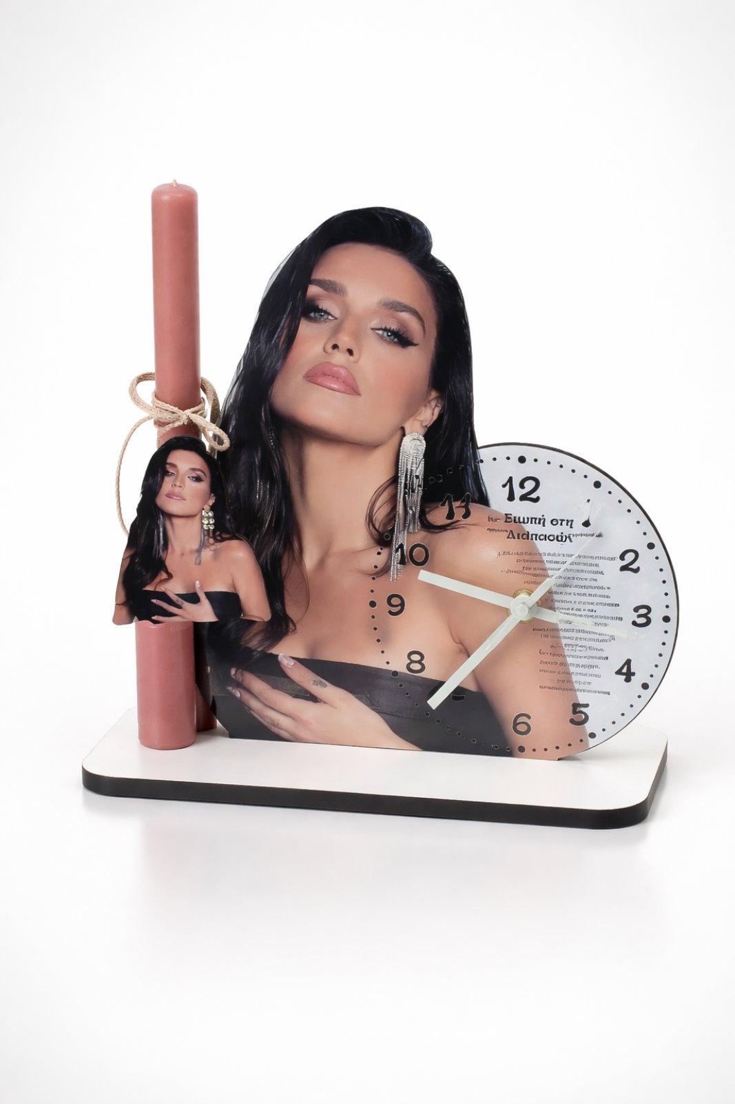 Μια ιδιαίτερη πασχαλινή λαμπάδα με επιτραπέζιο ρολόι εμπνευσμένη από την Ιουλία Καλλιμάνη , σχεδιασμένη για όσους αγαπούν τις μεγάλες ελληνικές επιτυχίες και το ξεχωριστό της ύφος. Το σετ περιλαμβάνει επιτραπέζιο ρολόι με την αγαπημένη καλλιτέχνη και χαρακτηριστικό στίχο από τραγούδι της: “Σιωπή στην Διαπασών”. Ένα δώρο που συνδυάζει μουσική, αισθητική και συναίσθημα, ιδανικό για όσους θέλουν να χαρίσουν κάτι διαφορετικό.
