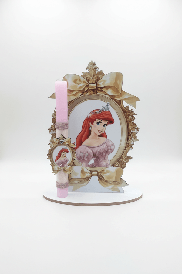 Χαρίστε στα βαφτιστήρια σας ένα μοναδικό και εντυπωσιακό δώρο με θέμα tην πριγκίπισσα Ariel εμπνευσμένο από την ταινία κινουμένων σχεδίων της Disney ” η Μικρή Γοργόνα ” το οποίο αποτελείται από χειροποίητη λαμπάδα με φιγούρα και σταντ διακοσμητικό.